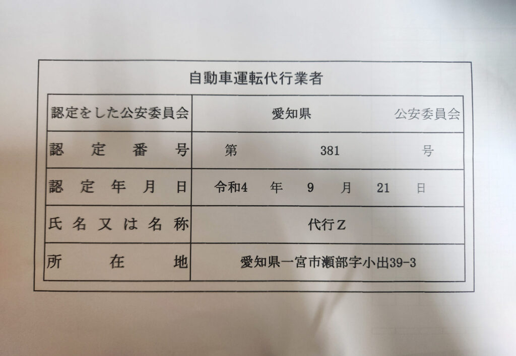 認定番号 代行Z